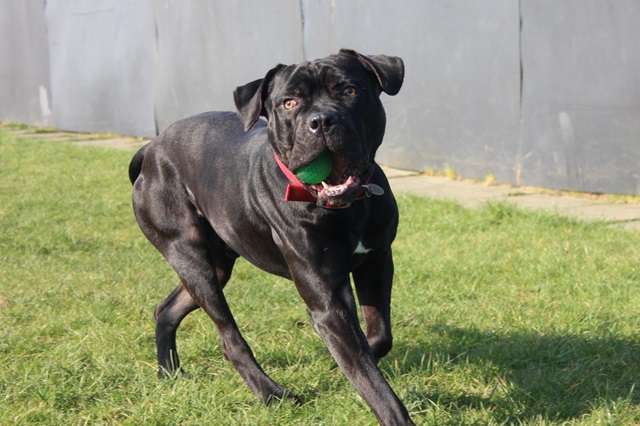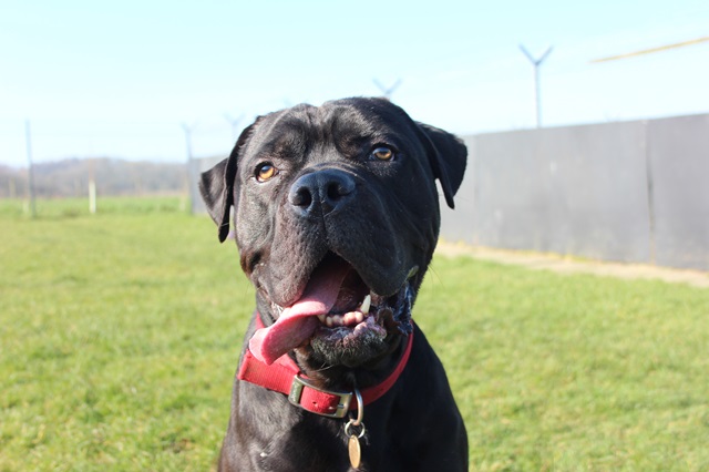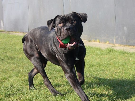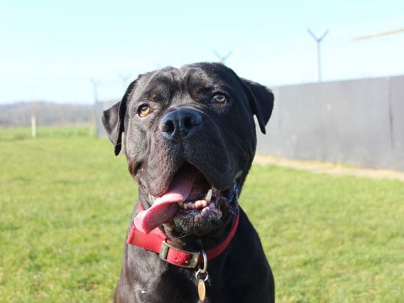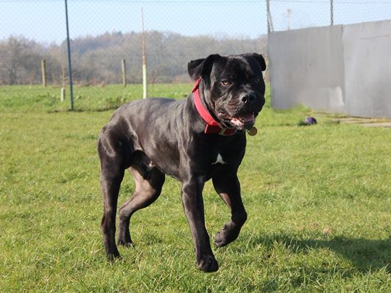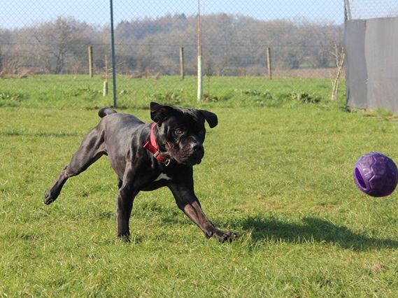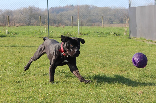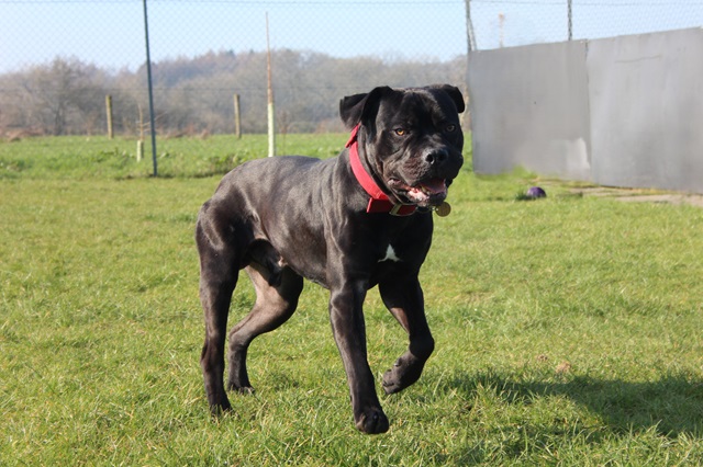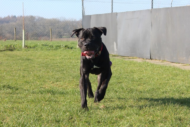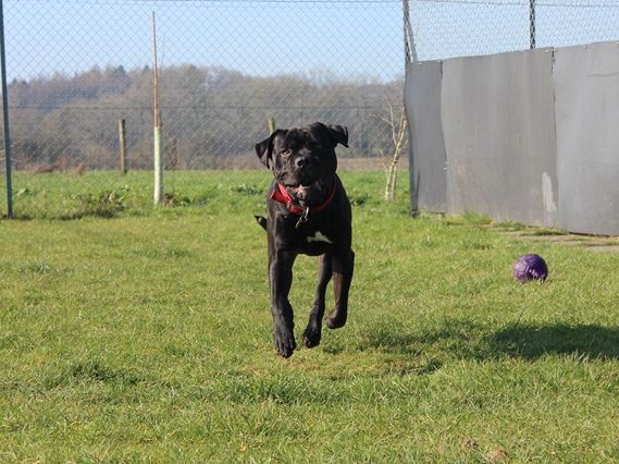 Knight arrived as a stray after a member of the public found him in the woods; scared and emaciated. Knight did his 'stray time' with the local pound and then came back to us. It took a while to build him back up to a healthy weight and now you wouldn't recognise him as the same dog.